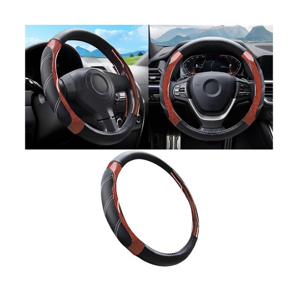 XINLIYA Car Steering Wheel Cover, Elastic Stretch Sport Leather Vehicle Steering Wheel Protector, 14.5-15 Inch Padded Soft Grip Non-Slip Auto Interior Protective Decor, Universal Fit (Wooden Coffee)