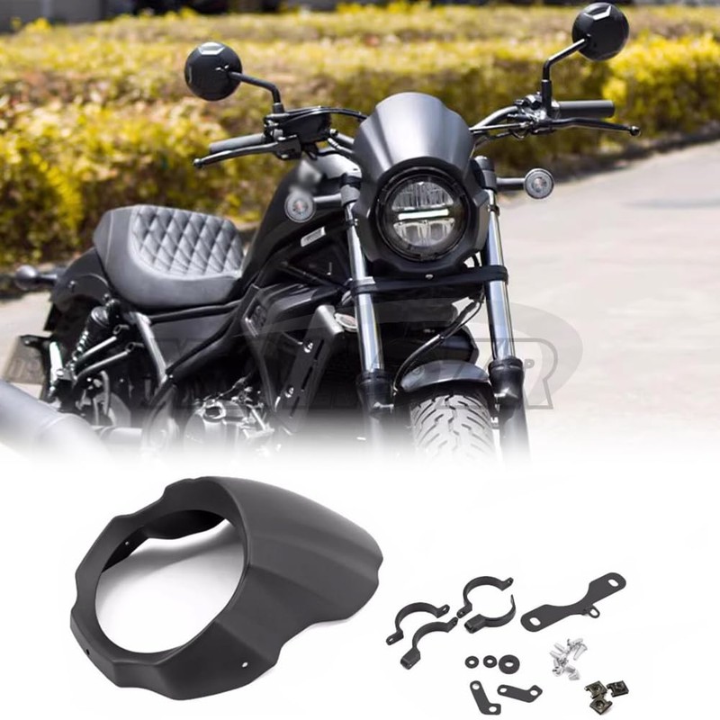 XINMOZR For REBLE 250 CMX250 REBEL250 REBLE CMX250 SE 2017-2025 FRONT FAIRING PIG HEAD HOOD FRONT HEADLIGHT LAMPSHADE DEFLECTOR (Bright Black)
