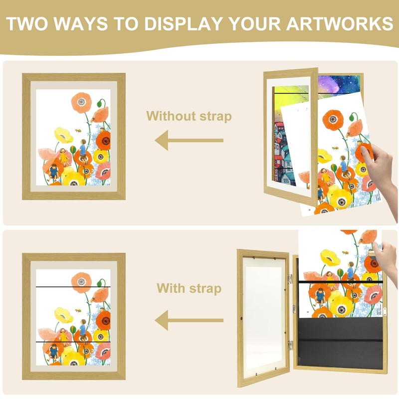 - [MULTI-PURPOSE] This artworks picture frame is is very versatile and is great for displaying kids drawings, 2D and 3D artworks, pictures, documents, certificates and photos!