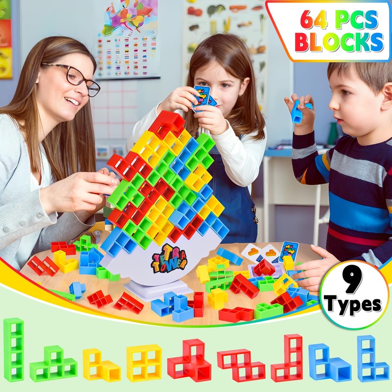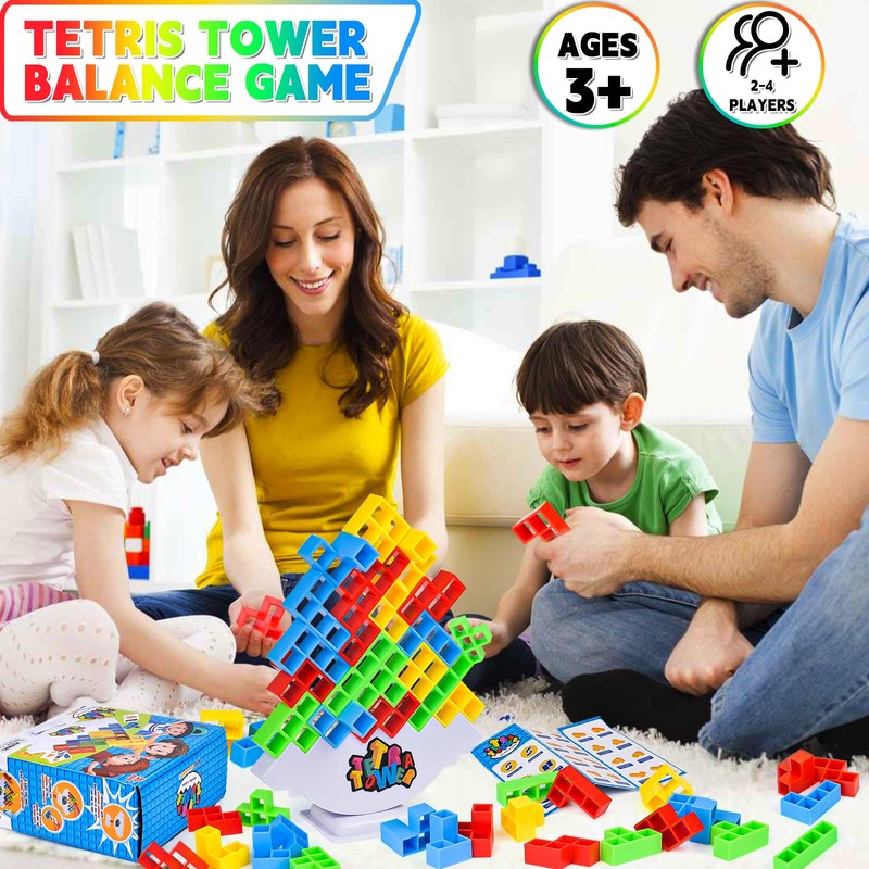xinrongda 64 Pcs Tetra Tower Balance Game for Kids Adults, Swing Stack High Child Toy Building Blocks Board Game, Montessori Puzzle Assembly Bricks Gift for Christmas Halloween Birthday