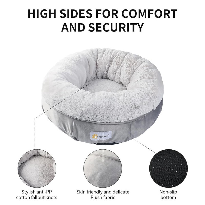 XINSOURCE Cozy Round Pet Bed, Cats Bed, Dogs Bed. Super Soft Plush Interior for Ultimate Comfort. High Walls Provide Extra Support. Non-Slip. Machine Washable. (Grey+Grey, Small)