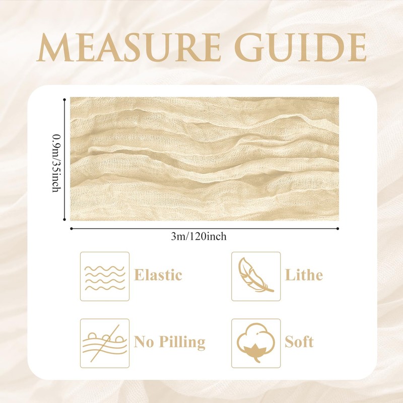 - 【Table Runner】You will get 1 piece, 35" W x 120" L(10FT) cheesecloth table runner. Each 10FT long is perfect for 3-4FT long table. The gauze table runner is long enough to span a larger table and drapes beautifully on table, making it ideal for special occasions where you need to host larger groups. The elegant, stylish rustic table runner add beauty to your table and a romantic atmosphere to your occasion.