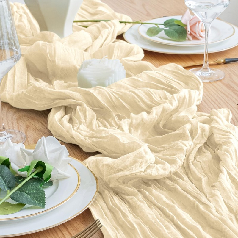 - 【Elegant Design】This romantic cheese cloth runner can be used as a decorative element for your dining table or party. It is an excellent addition to any event decoration, perfectly matched with flowers, candlesticks, and green plants, adding a touch of elegance to your overall decoration. Different colors and multiple quantities to choose from to match any event you want.
