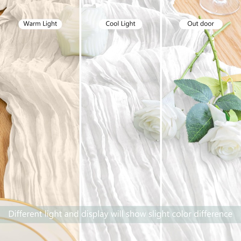 - 【Elegant Design】This romantic cheese cloth runner can be used as a decorative element for your dining table or party. It is an excellent addition to any event decoration, perfectly matched with flowers, candlesticks, and green plants, adding a touch of elegance to your overall decoration. Different colors and multiple quantities to choose from to match any event you want.