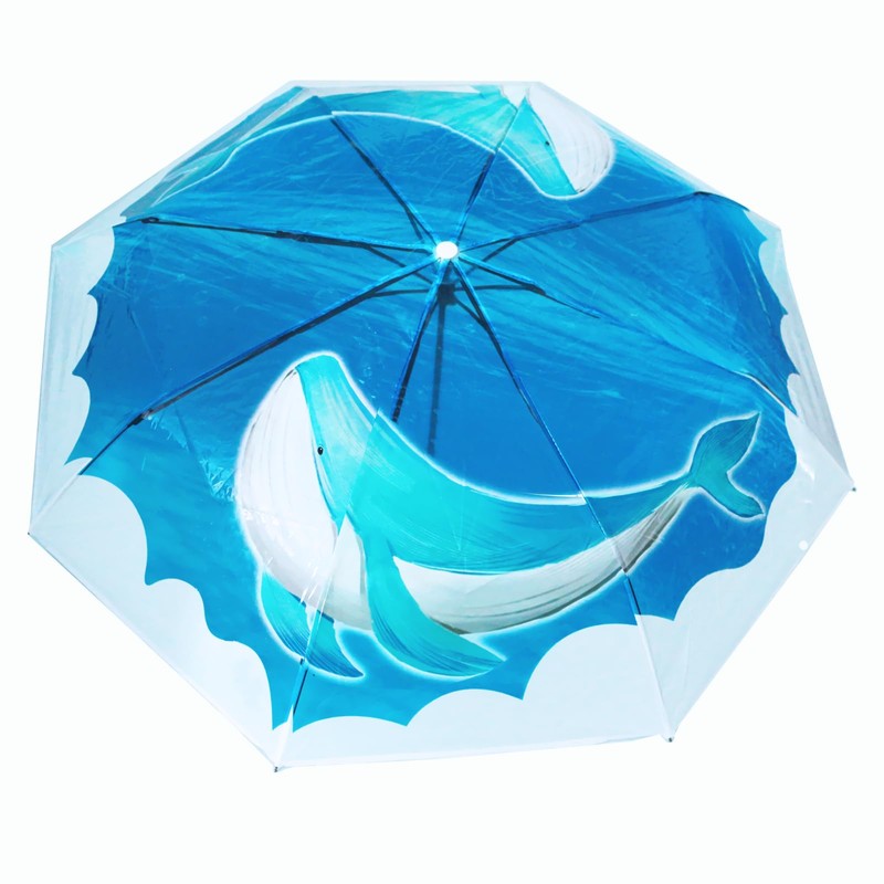 XiranYien Butterfly Clear Umbrella Women Elegant Unique Automatic Open Close Transparent Umbrella with Easy Grip Handle Travel Folding Umbrella (Whale)