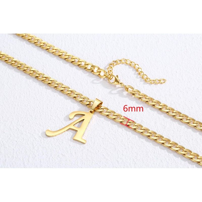 XIRUVE Stainless Steel Initial Letter A-Z Pendant Necklace for Men Women 6mm Width Cuban Chain Length Adjustable