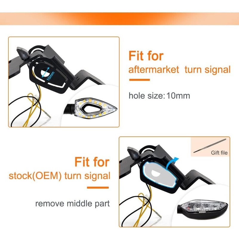 - Compatibility: Compatible with stock turn signals and aftermarket blinkers (10mm)