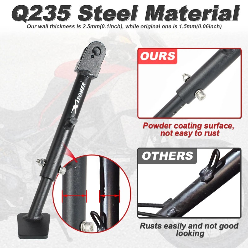 This kickstand made of Q235 steel tubing finished in durable black powder coating.
