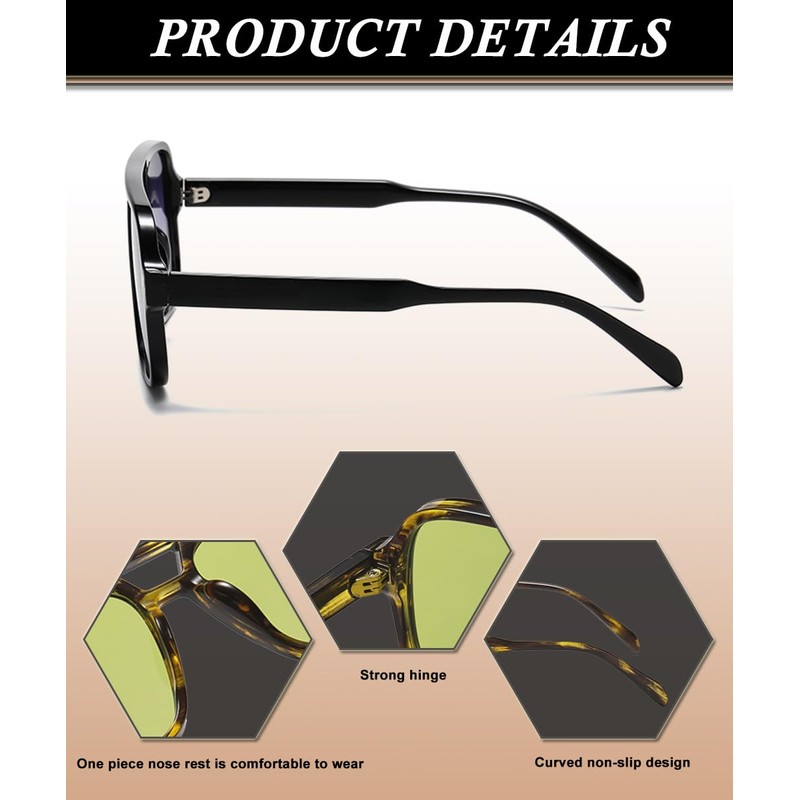 - UV400 Protection - UV400 lenses block 100% of UVA and UVB radiation, the oversized sunglasses are ideal for reducing overall brightness, protecting your eyes from long-term UV damage and giving you a clear view.