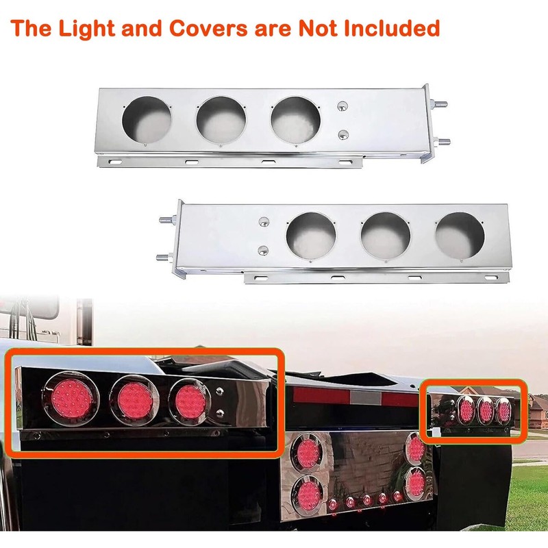 XIUHUA 30'' Straight Stainless Mud Flap Hangers w/ 4'' Light Cutouts for Semi Trucks