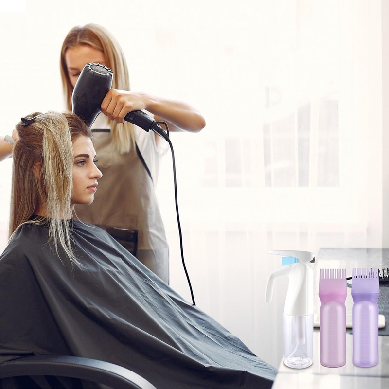 - Complete Pro Kit for Effortless Application "[3-in-1 Hair Care Set] 1x Continuous Fine Mist Spray Bottle (200ml) + 2x Graduated Root Comb Applicators (Purple & Pink) – Zero Mess Formula for Scalp Oil/Dye Application & Ultra-Fine Styling Spray. Sprayer Diameter: 2.3in/6cm