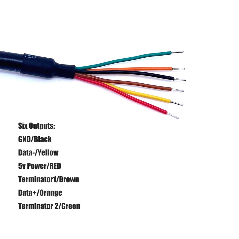 - ✔️PINOUTS: GND/Black, Data-/Yellow, 5v Power/RED, Terminator1/Brown, Data+/Orange, Terminator 2/Green