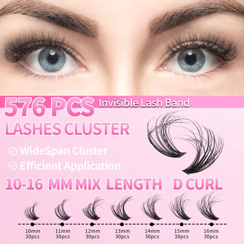 - Easy to Use Lash Cluster Cluster: It's easy to create stunning lashes with our eyelash extension kit. Start by curling your natural lashes and applying a thin layer of lash adhesive to the base of your natural lashes, then use tweezers to pick up the extensions from the base of the false lashes, apply the bush under your natural lashes, and brush the bush with lash