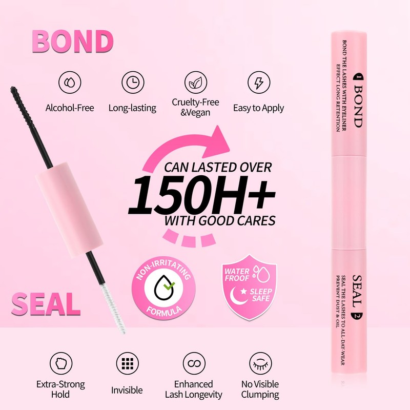 - Gentle Non-irritating Applicator: The bond & seal and lash remover use mild formula, and have a excellent waterproof, gentle and not irritating. The lash adhesive provides long-lasting hold and your individual eyelash clusters can keep long-lasting for 48h+. The spiral lash brush head ensures that the adhesive is applied evenly and is as easy as applying mascara. Every eyelash extension kit comes equipped with tweezers, making application precise and hassle-free