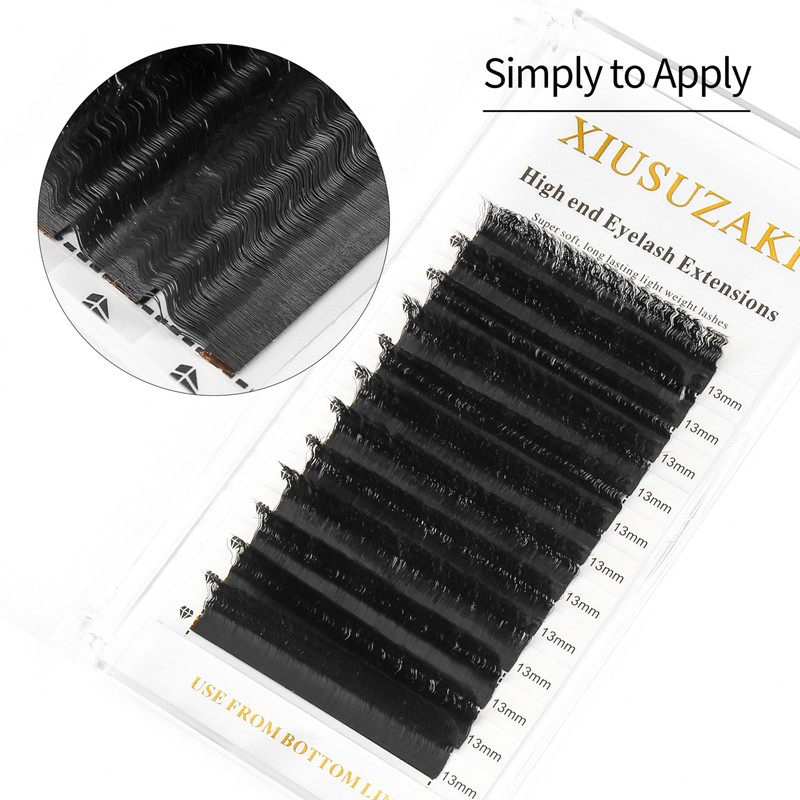 • Lash extensionsXIUSUZAKI offer wool curly lashes, feel free to choose any style you like. 0.05/0.07mm thickness, C/D/L/LU curl, mixed 8-15mm(8mm*1,9mm*1,10mm*2,11mm*2,12mm*2,13mm*2,14mm*1,15mm*1), single 8-15mm.