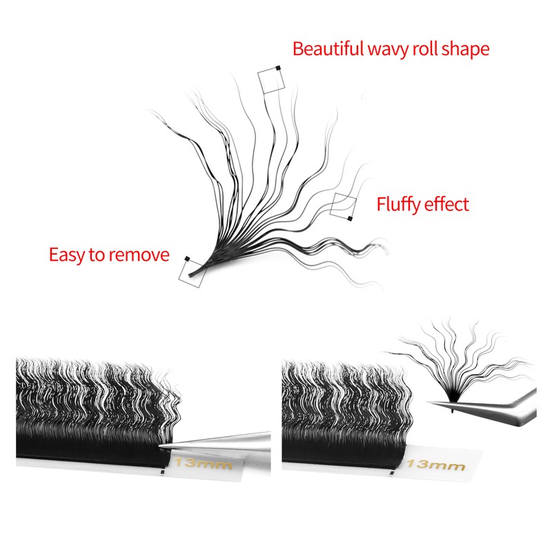 • Unique Look: Special wool curly shape, makes eyelash extension look more graceful and fluffy, very soft light and natural. Matte black, the appearance looks very similar to natural lashes. Not harmful to human skin or eyes.