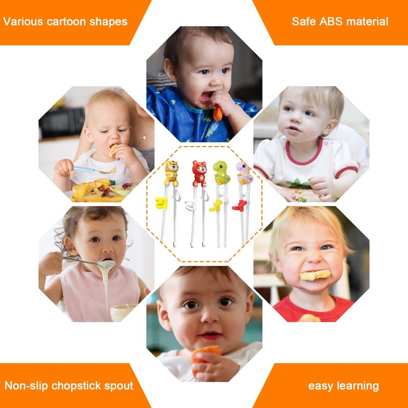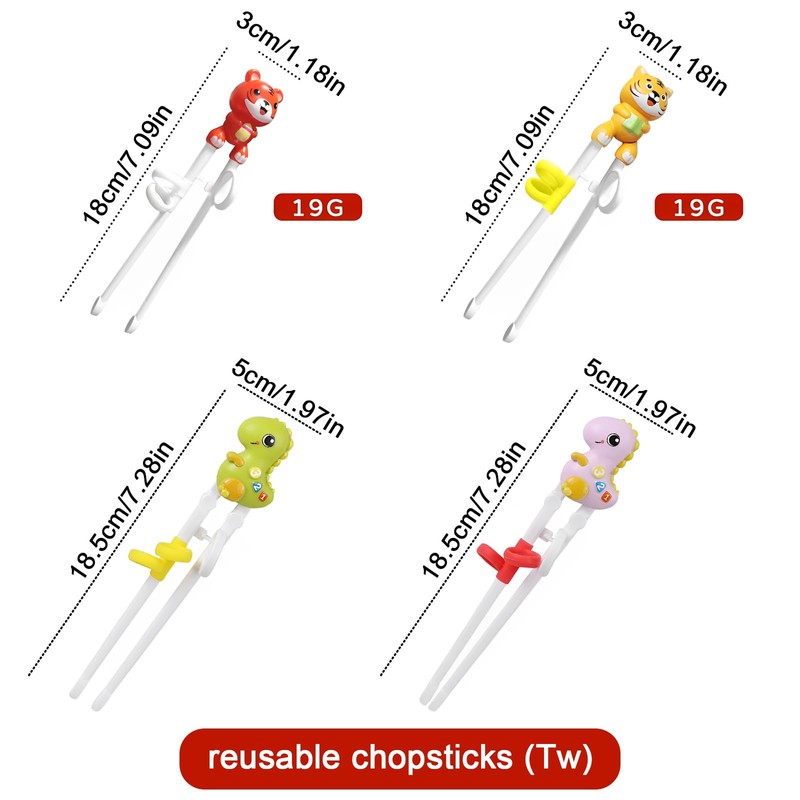 - Cute design: cartoon design chopsticks adds fun. Let children be ready to actively learn and make food happy. And help children beginners how to use chopsticks and master the technique really easily and quickly. And it is reusable, easy to clean.