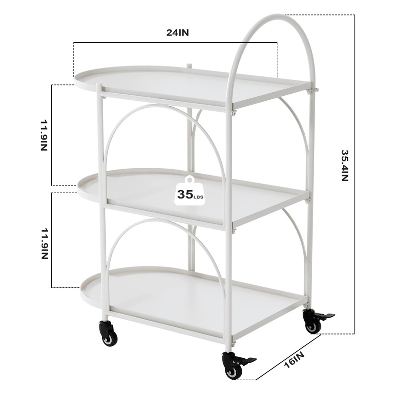 - [STRONG AND STURDY] Bar Cart is crafted from high-quality metal, featuring reinforced metal shelves for added stability and strength. Each shelf can hold up to 20 lbs, with a total weight capacity of 60 lbs.