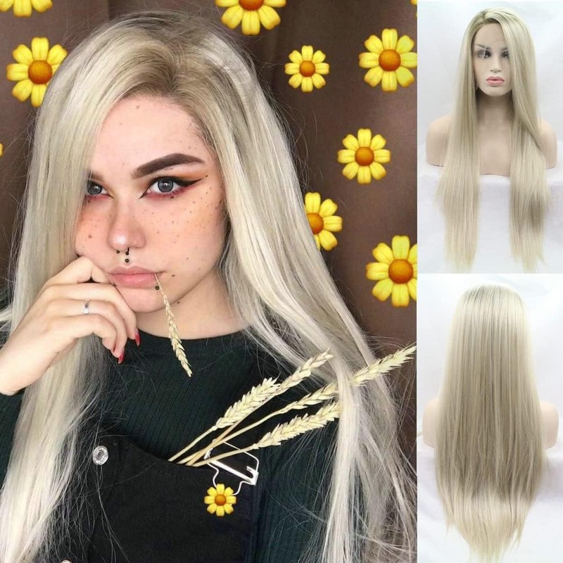 Xiweiya Light Blonde Mixed Wig Ombre Blonde Natural Wavy Synthetic Lace Front Wig Heat Resistant Fiber Hair Glueless Soft Wig High Density Half Hand Tied Wig for Women 24inch (ombre light blonde)