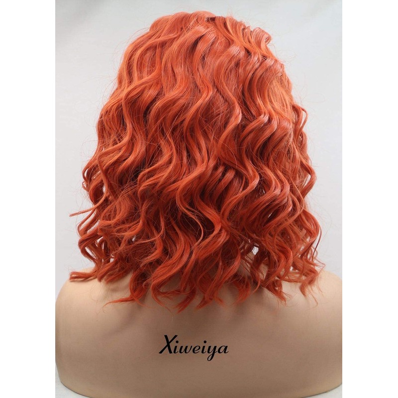 Xiweiya Short Bob Curly Wigs Synthetic Curly Wig Lace Front Orange Wig Heat Resistant Fiber Side Part Curly Wigs For Women Cosplay Wig Party Daily Wig 14"