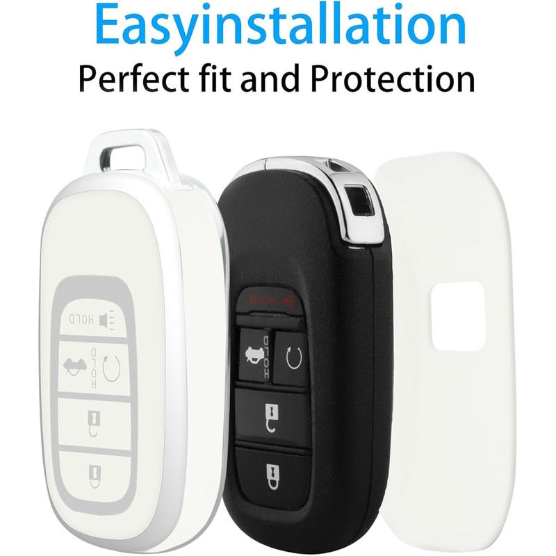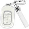 XIYANG TRADE Honda Key Fob Cover with Keychain, Soft TPU Protection Case for 2022-2024 Accord, Civic, HR-V, CR-V, Pilot Smart Remote Key (White)