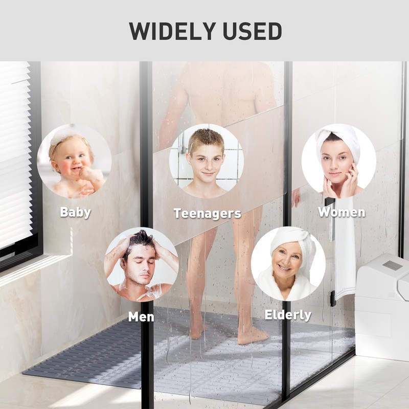 - 【Cut to Size for Personalized】This anti slip shower mat covers 36 inches by 16 inches of surface, leaving a good amount of activity area and fits most bathtubs or bathroom floors.If you want larger size,you can purchase pieces together side by side; and if you want smaller size,you can cut the mat as you need to fit your tub or any area. ensuring a perfect fit and enhancing the overall aesthetics of your bathroom