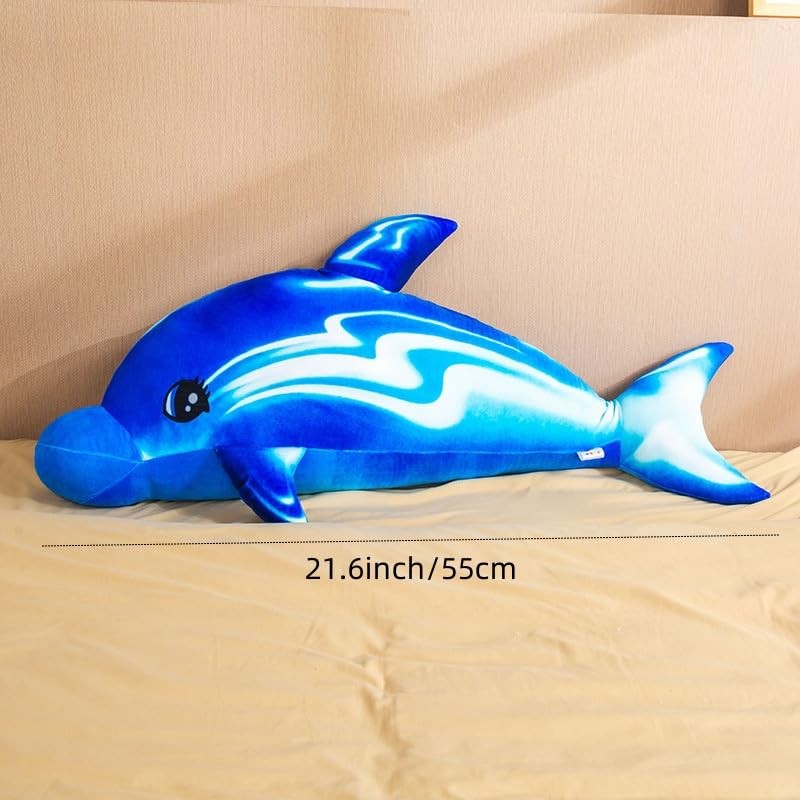 - Design: Simulated dolphin ocean Stuffed toy with bright colors and vivid eyes.