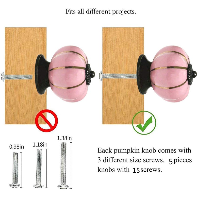 - 【 3 SIZED SCREWS 】 Contains 3 different sizes of screws, a total of 15 pieces screws which is very convenient for your different projects. Each pumpkin knob comes with 0.98 inch, 1.18 inch and 1.38 inch screws.
