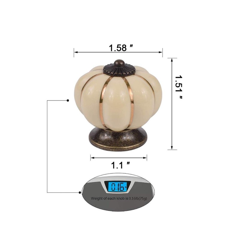 - 【High Quality Knobs】Ceramic body and copper base, pumpkin shape, solid structure, very sturdy, and not easy to come apart, easy to clean.
