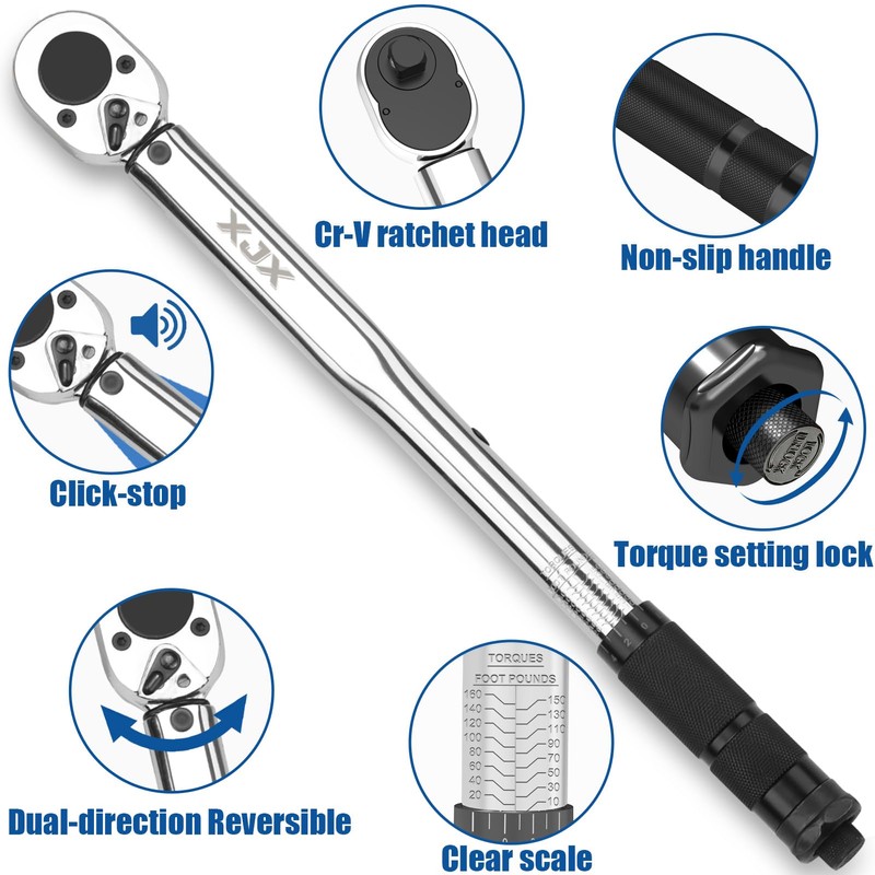 XJX 1/2-Inch Drive Click Torque Wrench Set, 10-160FT-LB/13.6-217.1Nm Torque Wrench
