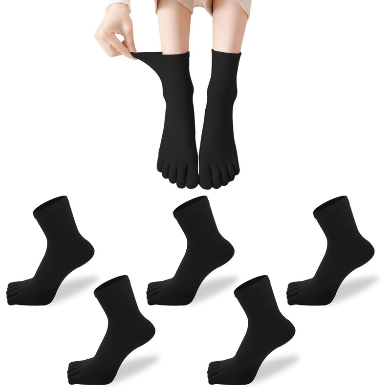 [XKAOPUTE] 五本指ソックス クルー丈 レディース 女性 スポーツ用 ランニングソックス ショート丈 綿 5本指 靴下 通気 頑丈 無臭 5足セット (ブラック クルー丈)