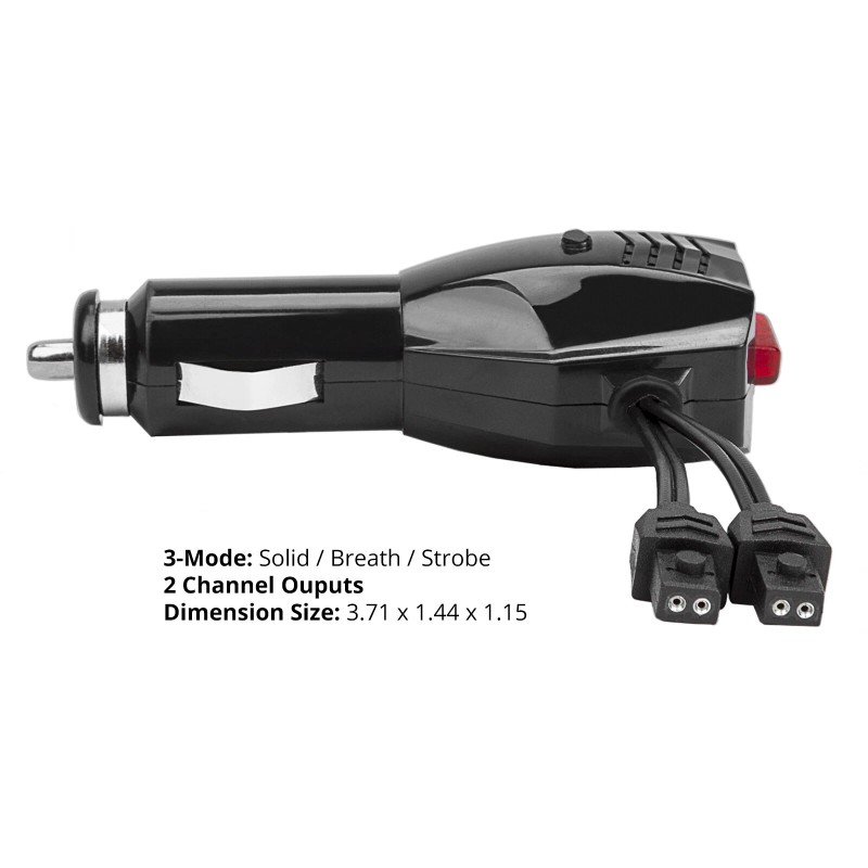 - Newly designed car controller plug integrated mode button (on/off; solid color; 2 channel strobe; breath effect)