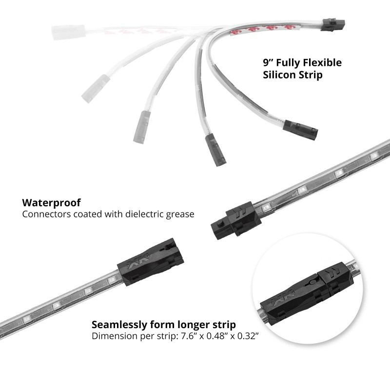 Awe-inspiring, optimized for the premium light coverage of underbody, this 4pc kit is one of XKGLOW's most popular. Compact and ultra-bright lights that enhance your vehicle, this all-included kit is entirely plug-n-play, reducing installation time to a minimum. The strips can be attached to a broad range of positions under your car, which casts bright light from all angles without exposing the light source.