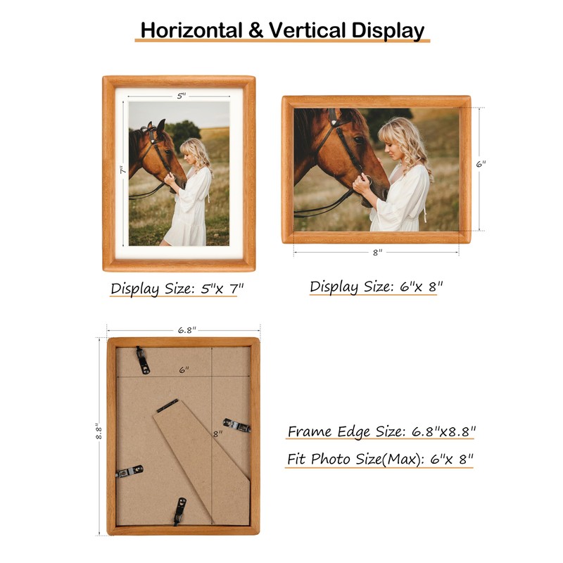 XKIILH 6x8 Picture Frame Teak Solid Wood with Real Glass Vertical Horizontal Standing Display Photo 5x7 with Mat or 6x8 without Mat for Desk Tabletop Wall Mount Gallery Frame