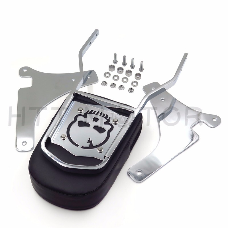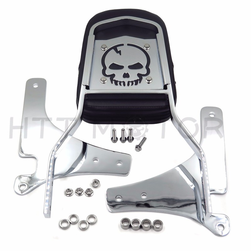 XKMT-Chrome Skull Backrest Sissy Bar w/Leather Pad Compatible With Kawasaki Vulcan 800 1996-2005 [B07BRT13VZ]