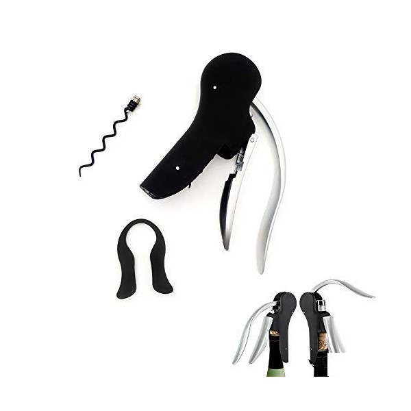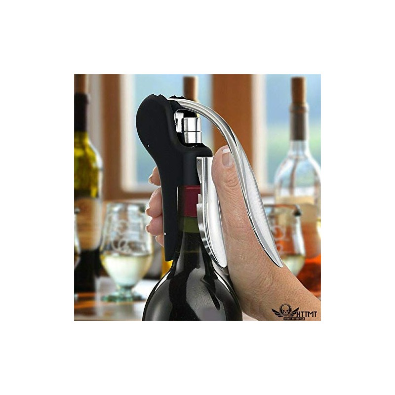 • OPEN ANY BOTTLE WITH EASE:The Vinomaster Automatic Lever Opener makes opening any bottle of wine a breeze. After placing the corkscrew on top of the cork, a simple pull of the lever downwards and upwards will ensure the cork flawlessly leaves the bottle and won't be damaged in the process. This allows you to kick back and enjoy your wine, without having to worry about pieces of cork floating around.