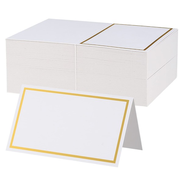 XKQYX 106 Pcs Table Place Cards, White Blank Tent Card Name Cards with Gold Foil Border, Wedding Place Cards for Weddings Banquets Events Table Setting Party Dinner Reception Seating Place Cards