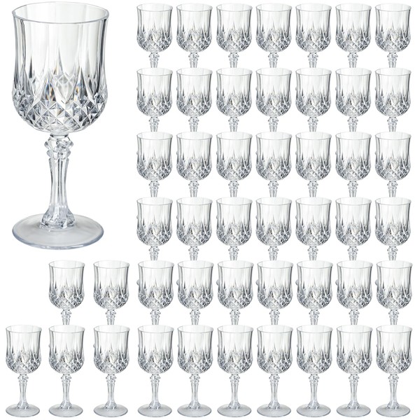 XKXKKE 48 Pcs Transparent Plastic Wine Glasses, Transparent Plastic Goblets for Parties, Transparent Drinking Glasses for Wedding Reception, Grand Event Party Supplies