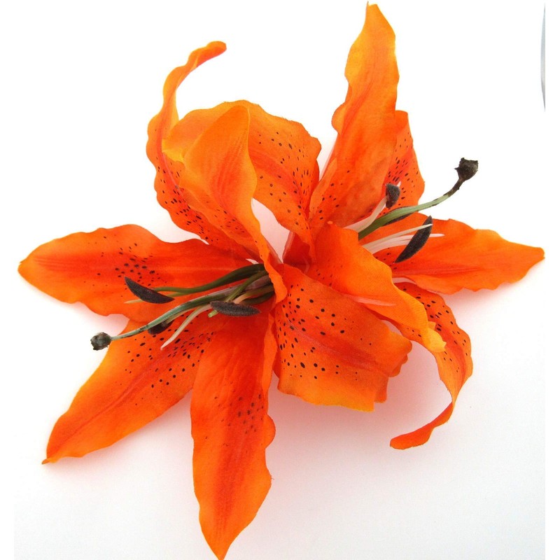 XL Double 8 inch Orange Tiger Lily Silk Flower Hair Clip