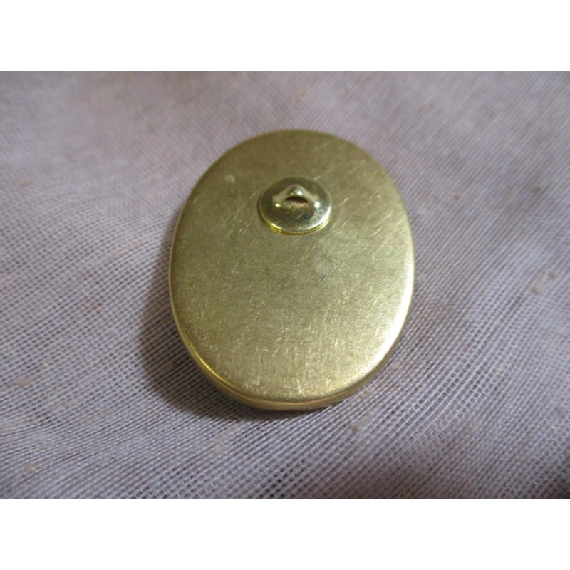 XL GLASS DOME PICTURE BUTTON -- XL NEW "STAINED GLASS" SERIES -- STAINED GLASS HANDSOME GIRAFFE WITH SUNNY COLORFUL BACKGROUND. (please ignore the white spots from my lamp). THE BACK IS GOLD METAL WITH APPLIED GOLD METAL SHANK. 30x40mm (1-1/2 inches)