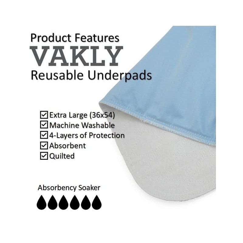 - AMPLE COVERAGE - Each extra-large reusable under pad measures 54-inches on the long side and 36-inches on the short side. These washable XL underpads will give you more than enough coverage and protection. Our absorbent mattress guards cover more than just the area under the patient, but also the areas on the side, making these perfect for people that move around in their sleep.
