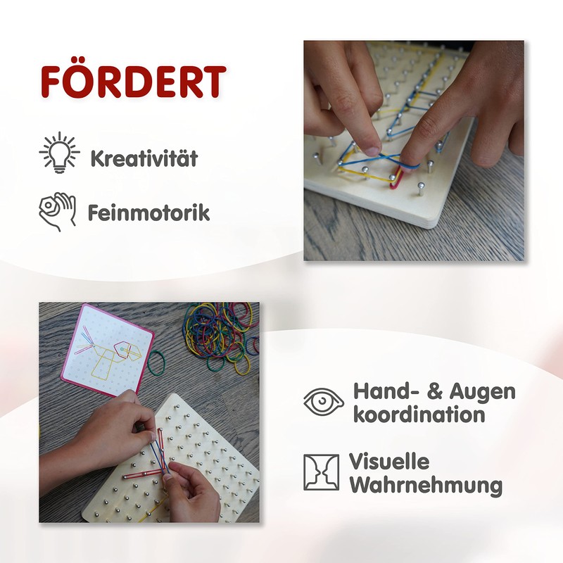 • Versatile: the geoboard is suitable for independent training of concentration and endurance as well as for playing and discovering together.
