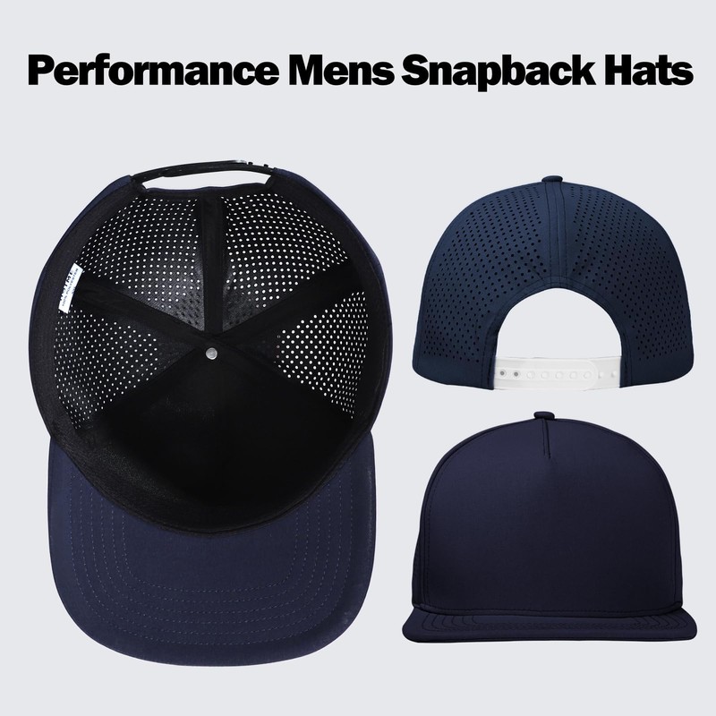- 【Baseball Hat Premium Quality】Unique material also makes the snapback hats light, comfortable and quick dry, breathable, moisture-wicking; Laser cut holes ensures your head breathable, Hat exterior waterproof, classic adjustable snapback closure to let your head fit better.