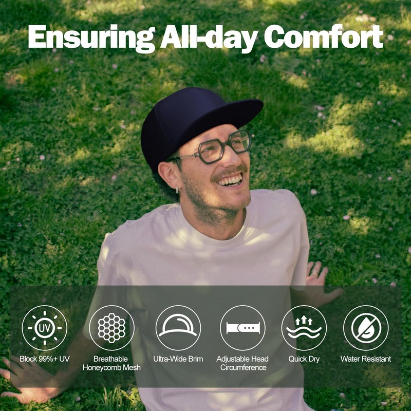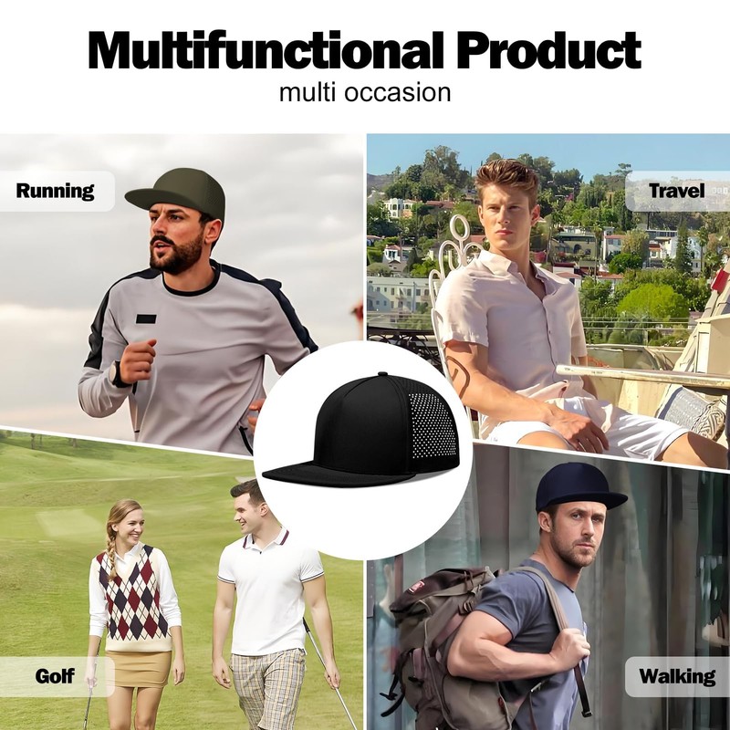 - 【Men's Hats High Performance】: The flat bill hat engineered performance fabric with precision craftsmanship, 5-panel, UV-resistant Flat brim to keep out of the sun, structured front panels and mid crown to maintain shape; Built-in sweatband to absorb sweat, it can help prevent sweat from dripping into your eyes.