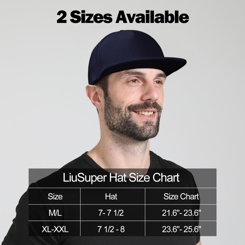 - 【Adjustable 2 Sizes】Flat-brimmed hat available in 2 Sizes, ①M-L: 7- 7 1/2, 55- 60 cm, 21.6-23.6 inches; ②XL-XXL: 7 1/2- 8, 60- 65 cm, 23.6-25.6 inches; Brim length is approximately 2.95 inches; Hat depth is approximately 5.51 inches. Brim width is approximately 7.28 inches. Choose from a variety of colors. Ensuring a comfortable, tailored fit.