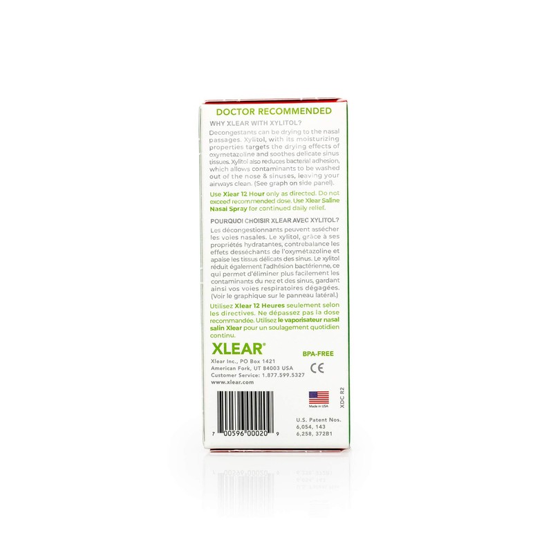 Xlear 12-Hour Nasal Decongestant Spray, Natural Saline Nasal Spray with Xylitol and Oxymetazoline, Instant Sinus Pressure and Congestion Relief for Kids and Adults 0.5 fl oz (Pack of 1)