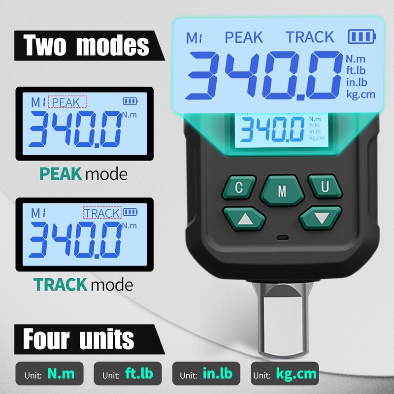 - Sunlight-ready LCD with real-time unit conversion: The clear, backlit LCD displays real-time torque in N·m, lb·ft and kg·cm units. Track peak torque readings and set custom thresholds with buzzer and LED warnings for error-free tightening in automotive, aviation, and heavy duty repairs