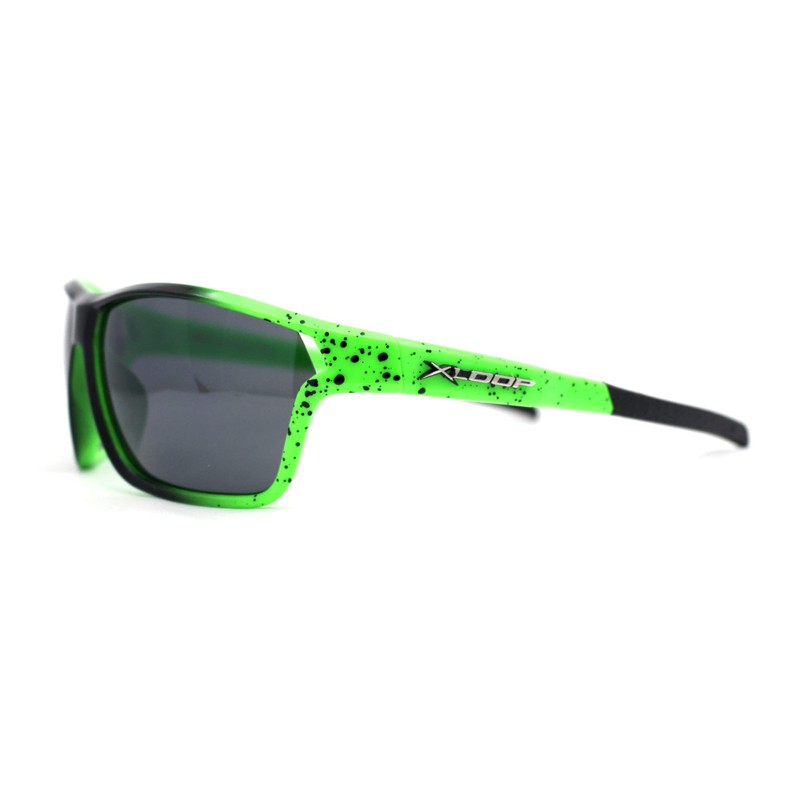 Xloop Mens Sport Wrap Around Rectangular Plastic Sunglasses Black Green