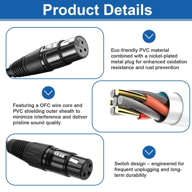 - Hi-Fidelity-Audio-Leistung: Dieses Kabel wurde für professionelle Audioqualität entwickelt und verwendet einen sauerstofffreien Kupferleiter für außergewöhnliche Klangtreue. Die Kupfergeflechtabschirmung reduziert Störungen und Störgeräusche, während die PVC-Ummantelung den Hochfrequenzgang verbessert