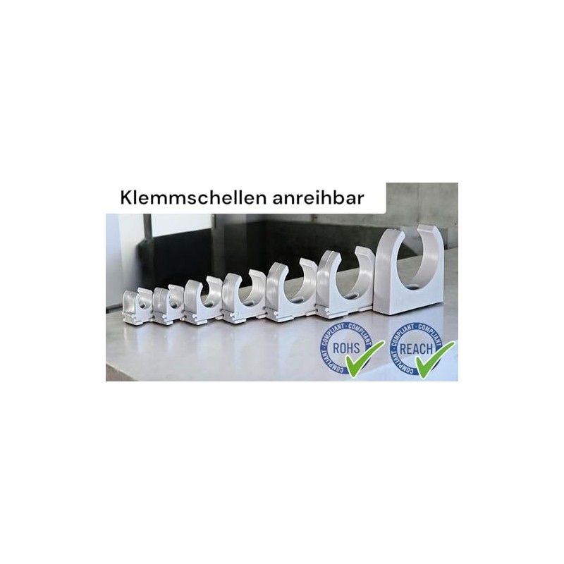 Quick and tool-free installation: the clamps allow for easy and time-saving installation by simply clicking in the pipes.